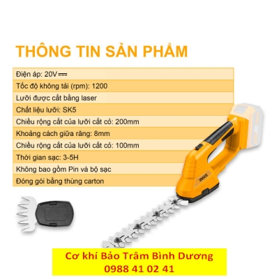 INGCO22_Máy tỉa cành-cỏ làm vườn dùng Pin 20v CSTLI2001